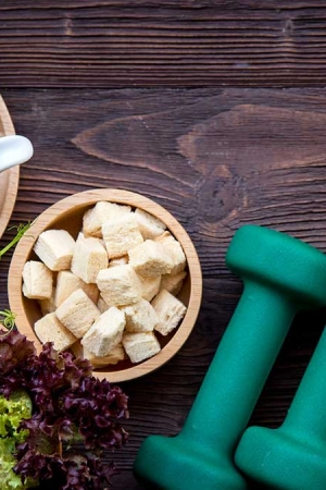 پروتئین باعث میشود هنگام تمرین عضلات کمتر تجزیه شوند و پس از تمرین سریعتر ترمیم شده و رشد کنند.